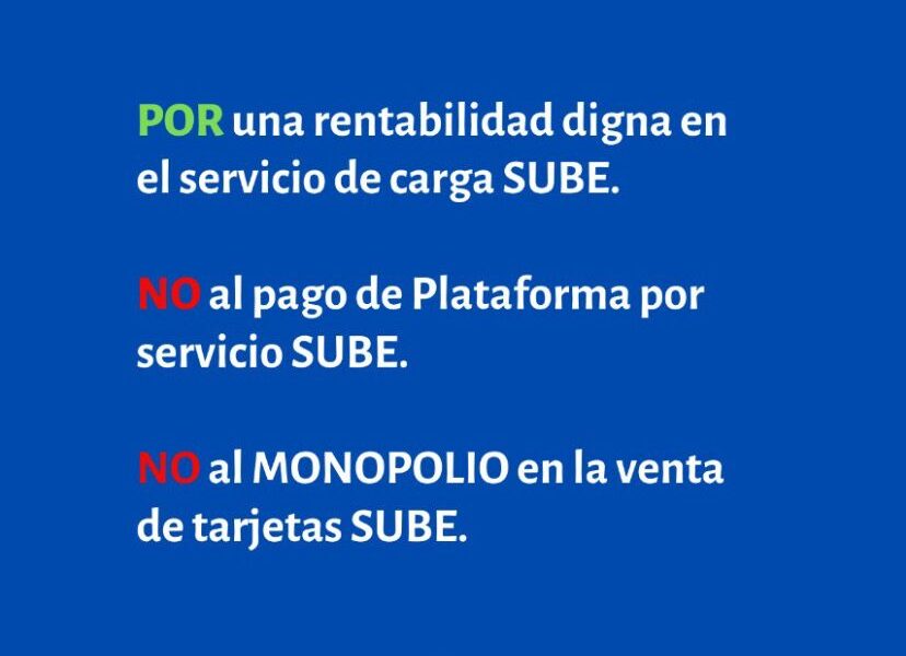 Desde esta organización sindical reclaman «una rentabilidad digna para el servicio de carga y piden «no pagar por la plataforma de la tarjeta», a la vez que denuncian la existencia de «un monopolio» en la venta de la SUBE.
