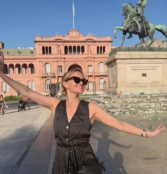 Reese Witherspoon, la actriz y productora de cine y televisión estadounidense está de visita en la Ciudad de Buenos Aires, y lejos de esconderlo, la estrella de Hollywood se sacó fotos en lugares históricos de la Capital Federa, como una turista más.