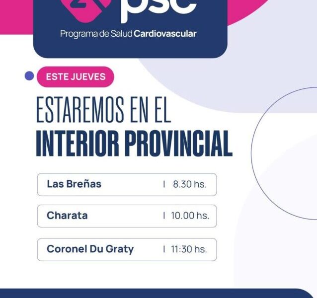 En esta oportunidad, el equipo del programa estará en las sedes de los municipios de las ciudades de Las Breñas, Charata y Coronel Du Graty, con el objetivo de fortalecer la detección temprana de factores de riesgo y promover hábitos saludables que contribuyan a la prevención de enfermedades cardiovasculares.