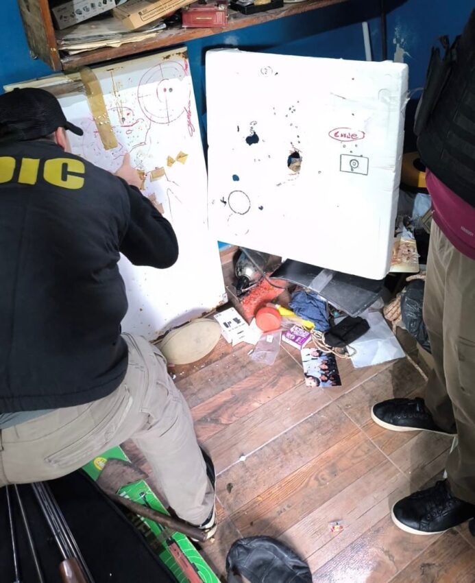 Durante el operativo, los efectivos secuestraron un importante arsenal compuesto por una pistola calibre 45 con cargador y cartuchos, un revólver calibre 22, escopetas de distintos calibres, rifles, carabinas, pistolones y tres armas de aire comprimido modificadas. Además, incautaron más de 60 cartuchos de diversos calibres, balines, estuches, pistoleras, dos teléfonos celulares y una notebook.